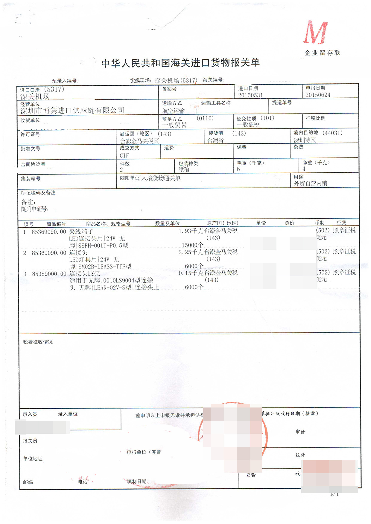 三、連接器進(jìn)口報(bào)關(guān)案例展示