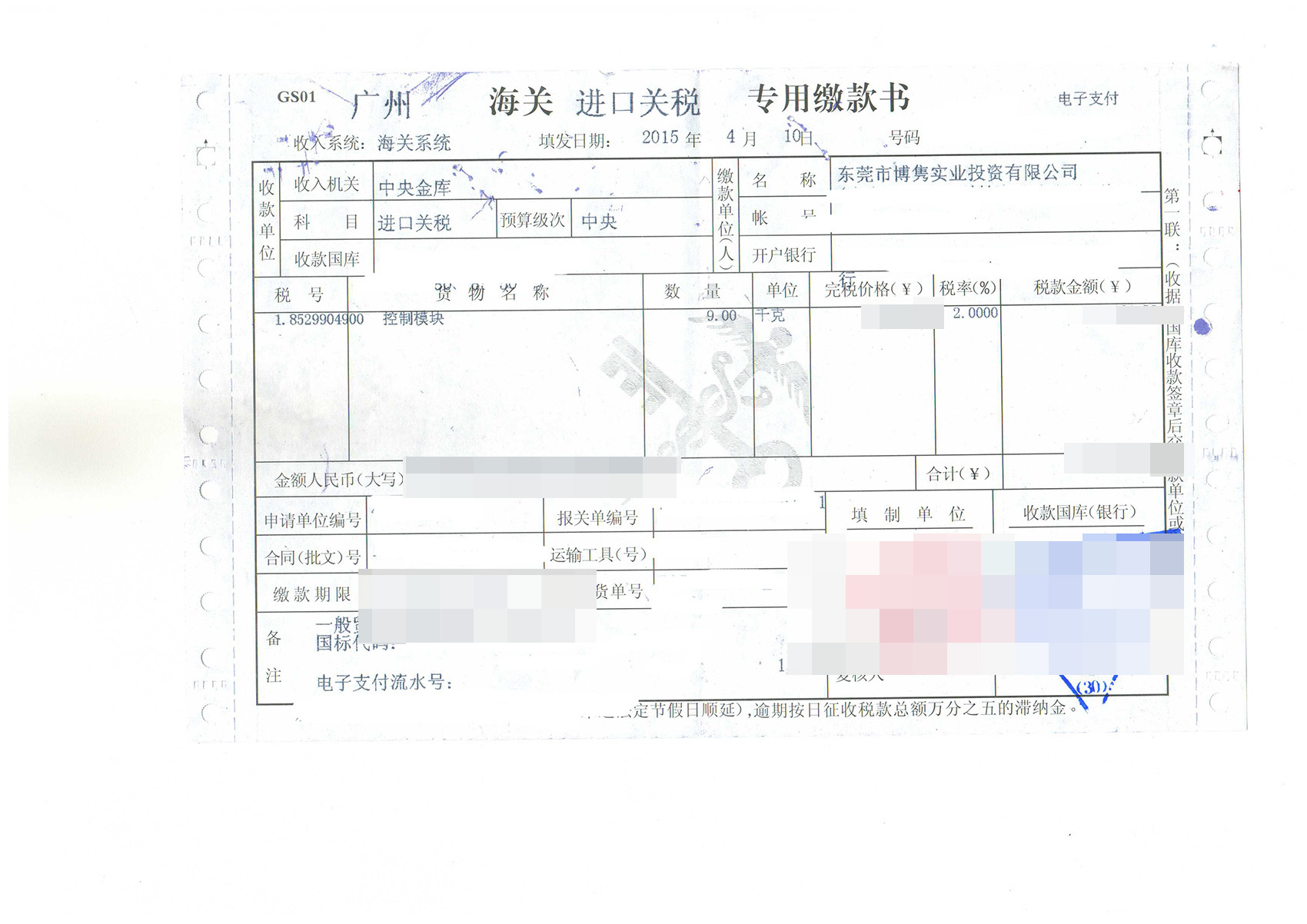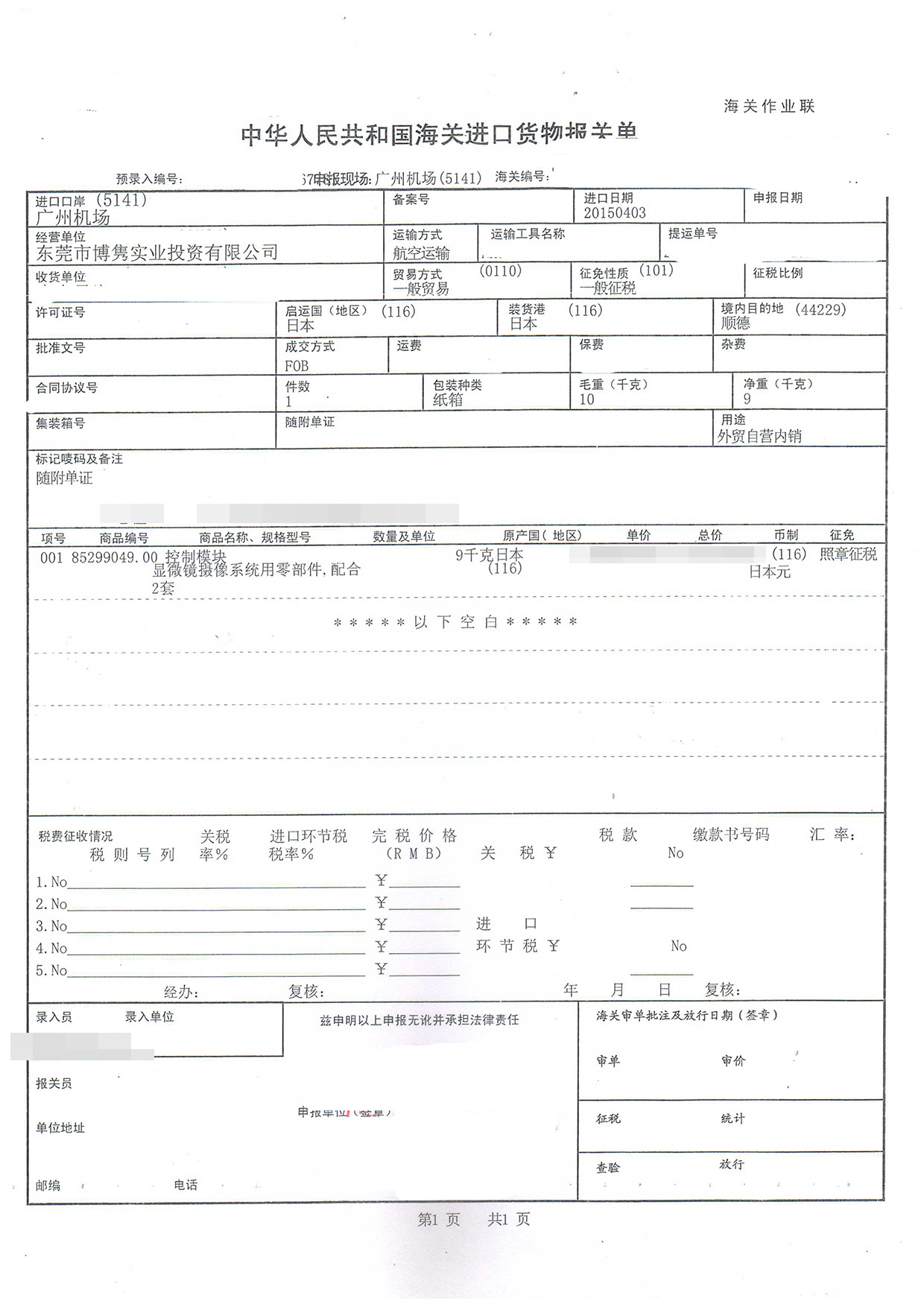 三、控制模塊進(jìn)口報關(guān)案例展示