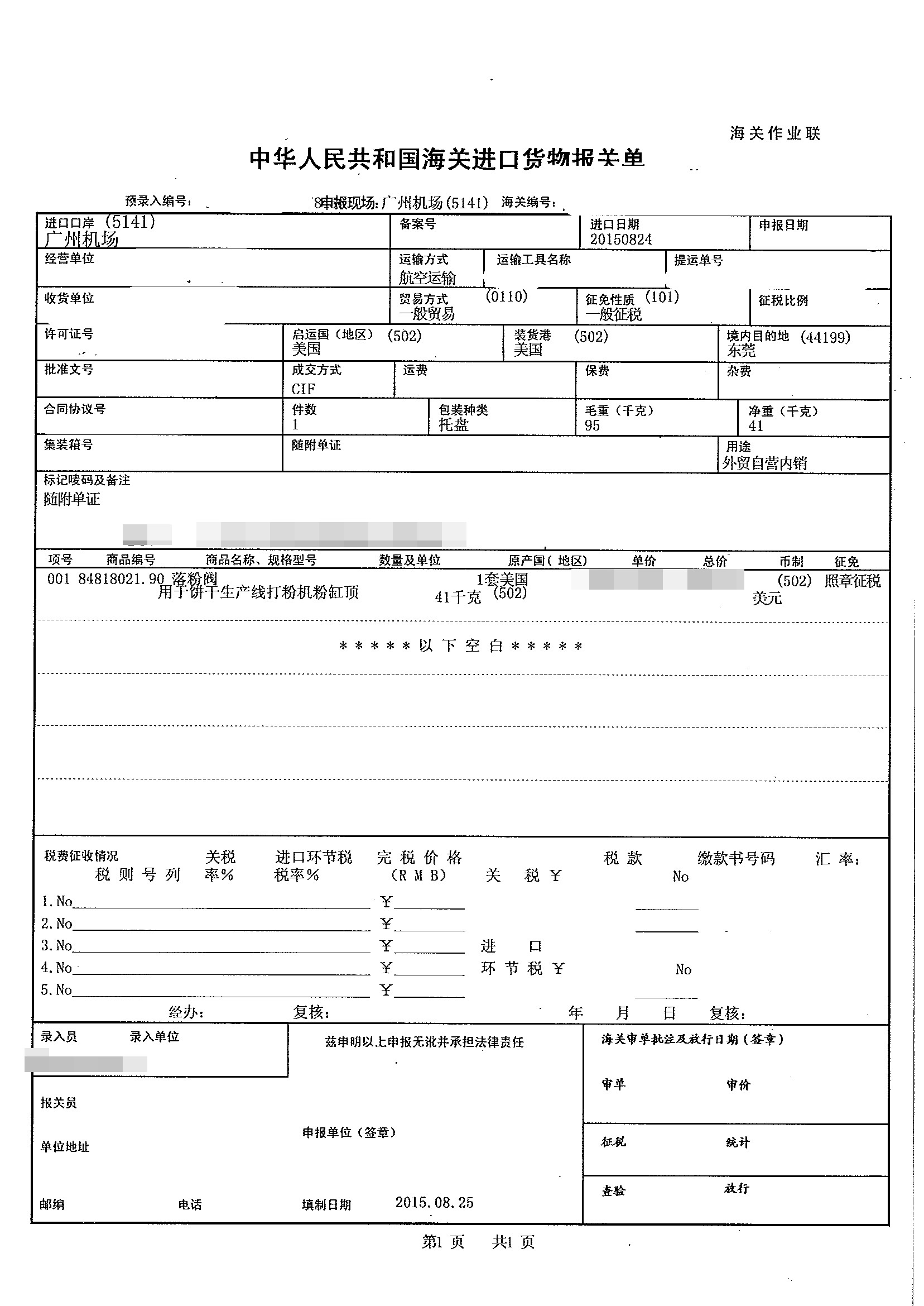 三、食品落粉閥進(jìn)口報(bào)關(guān)案例展示
