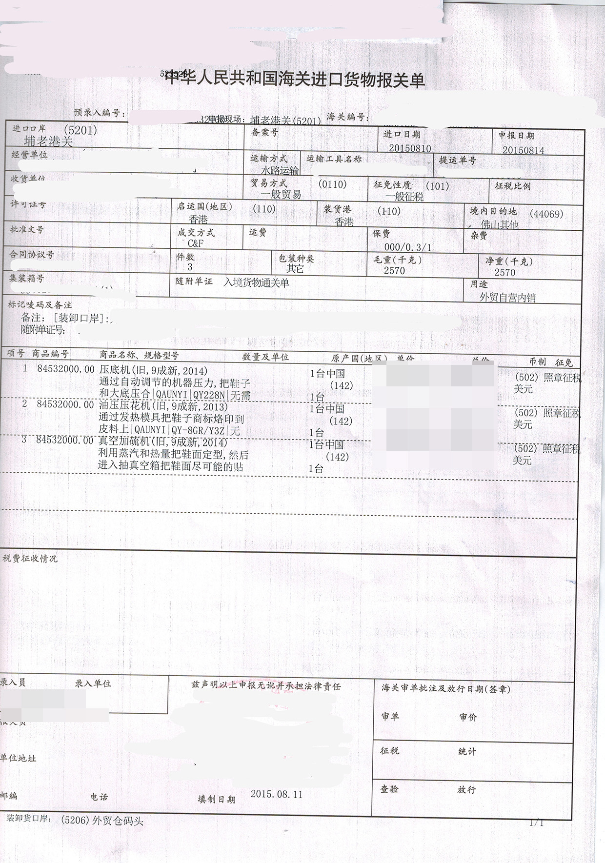三、壓底機(jī)進(jìn)口報(bào)關(guān)案例展示