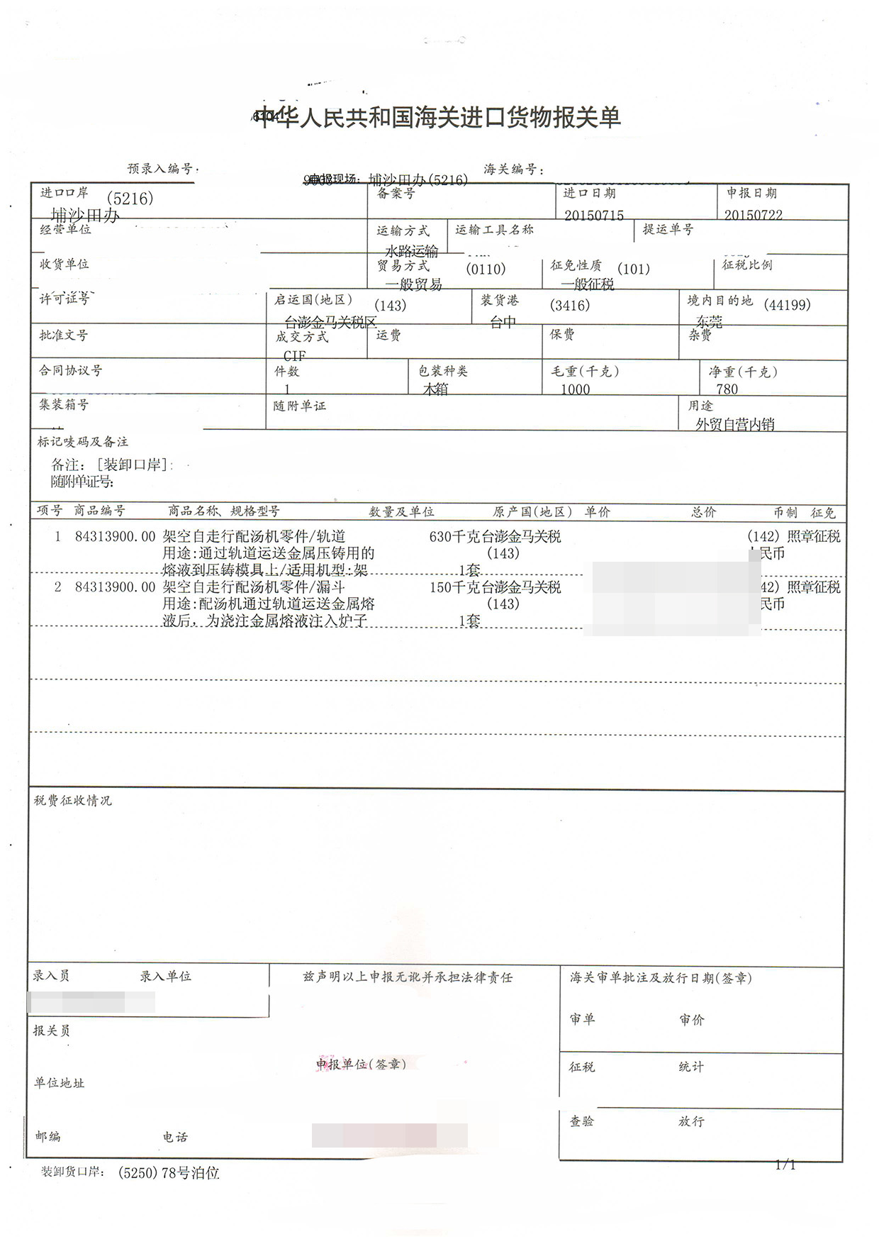 進(jìn)口日期:20150715