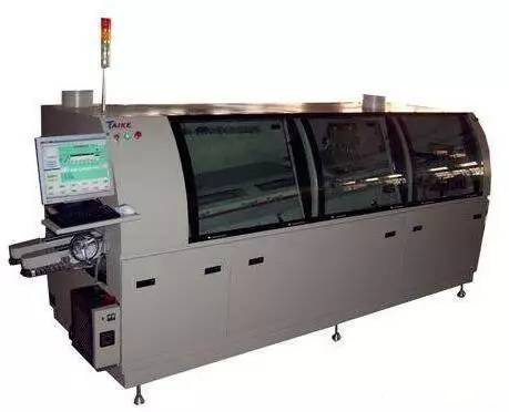波峰焊機是指將熔化的鉛錫合金燈焊料,經(jīng)電動泵或電磁泵噴流成設(shè)計要求的焊料波峰,亦可通過向焊料池注入氮氣來形成波峰,使預(yù)先裝有元器件的印制板通過焊料波峰,實現(xiàn)元器件焊端或引腳與印制板焊盤之間機械與電氣連接的設(shè)備。